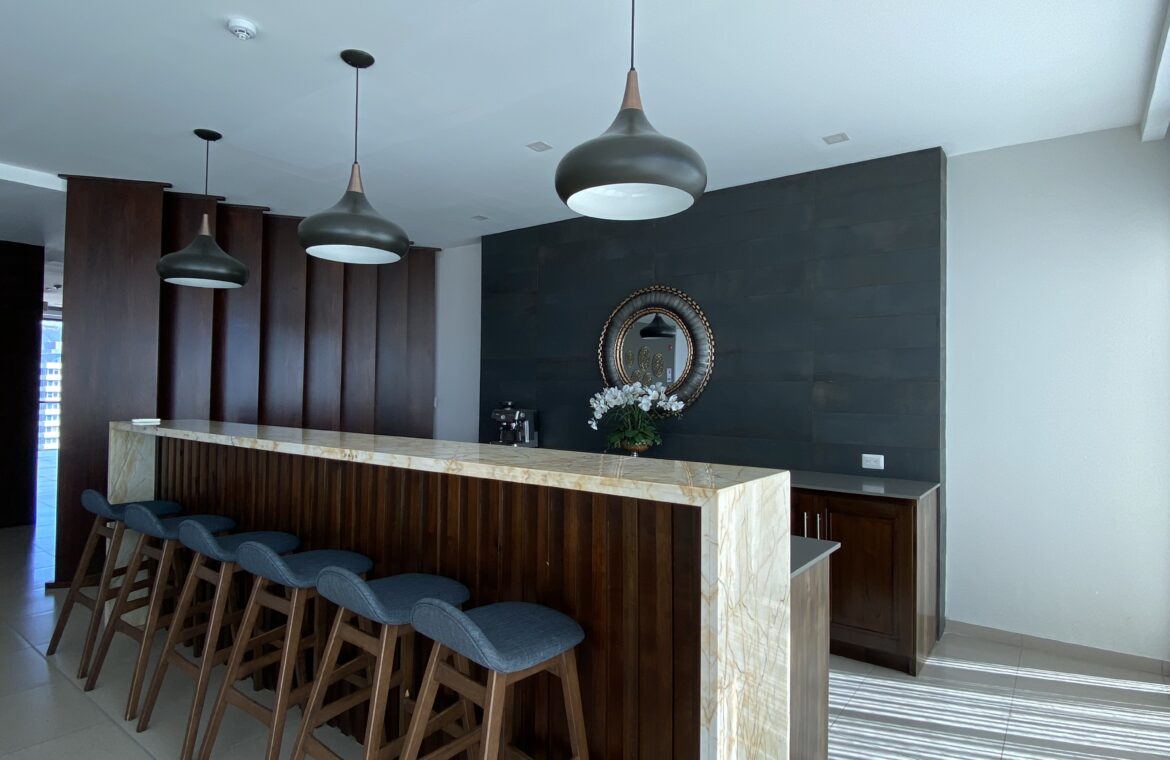 • Amenidades: Lobby, salón de eventos, terraza social con área de barbacoa, área de juegos para niños, gimnasio, sala de cine, piscina, sala de conferencia