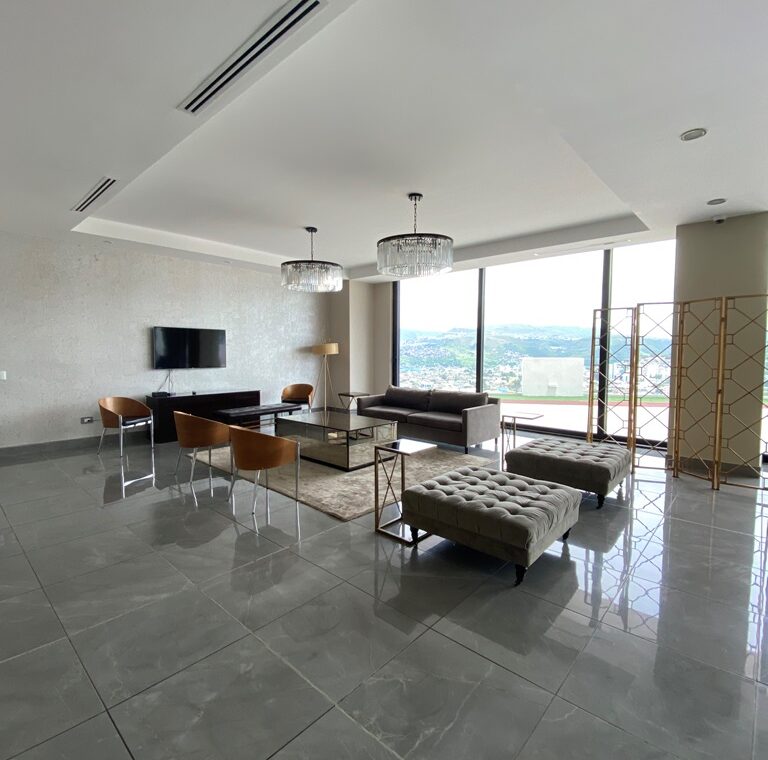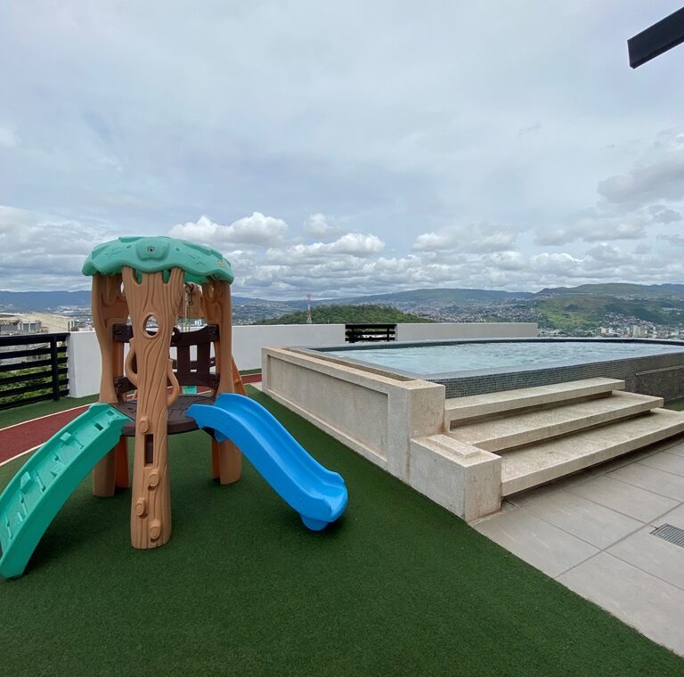 - Amenidades: Lobby, salón de eventos, terraza social, piscina, pista de atletismo, gimnasio, sala de cine, sala de reuniones.
