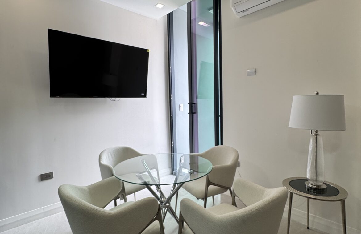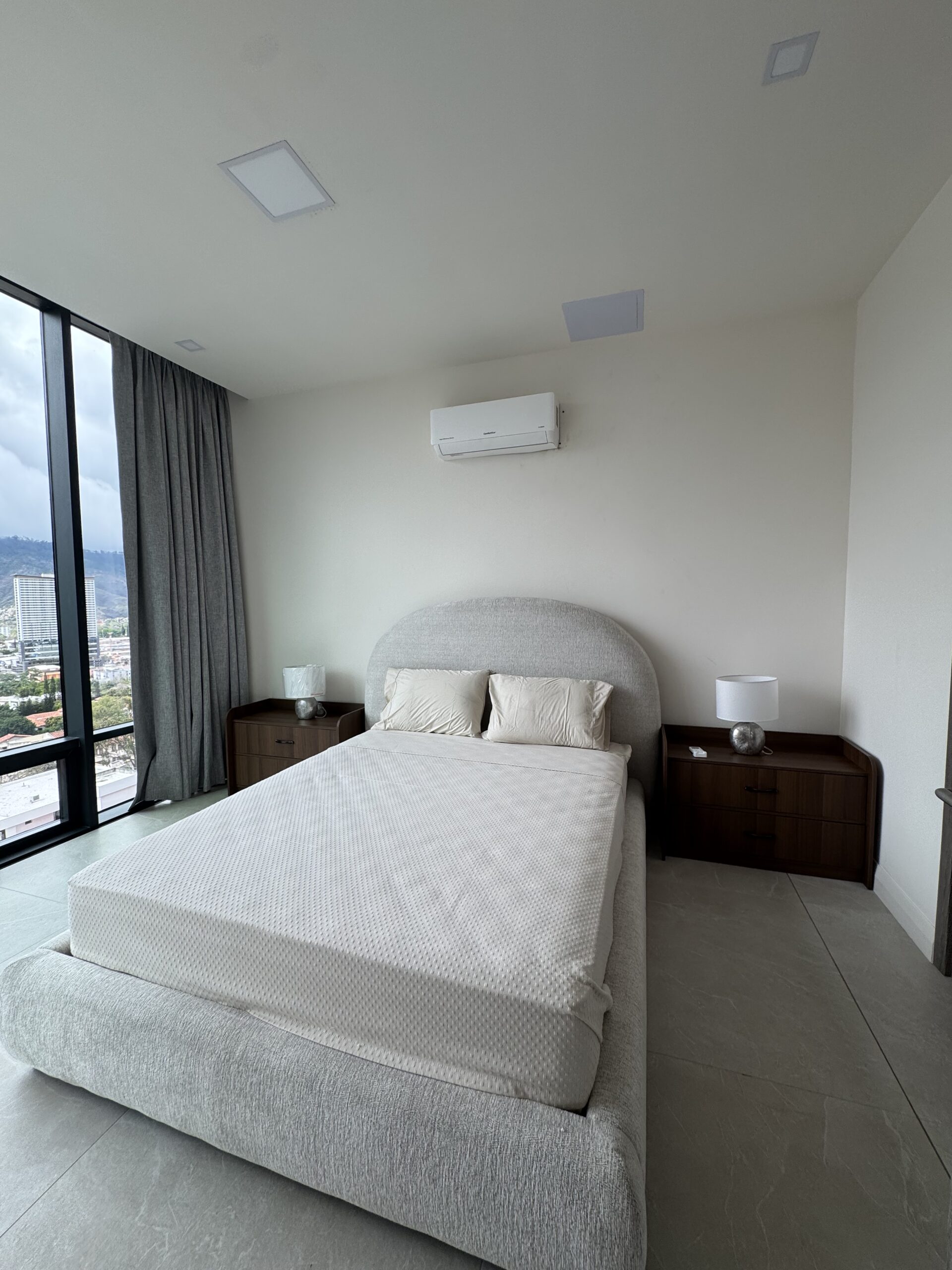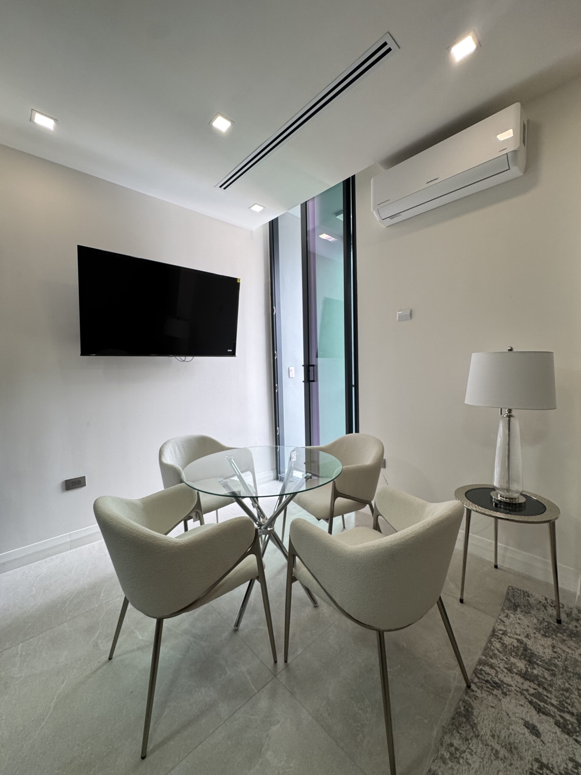 • Características: Sala, comedor, balcón, cocina con su top de cuarzo, 1 habitación con closet, 1 baño y aire acondicionado, 1 estacionamiento