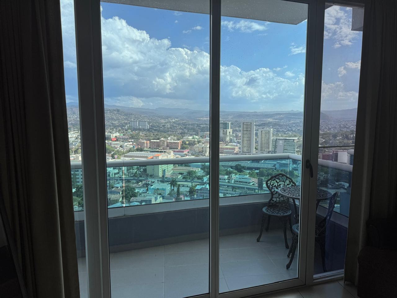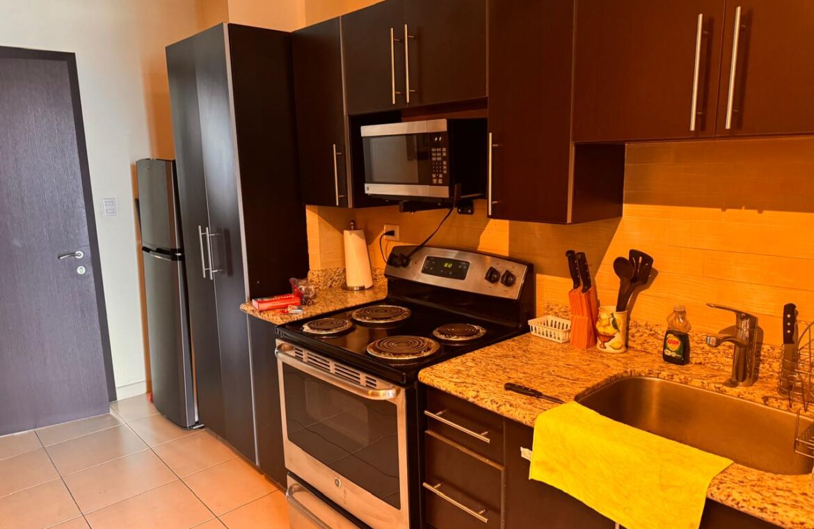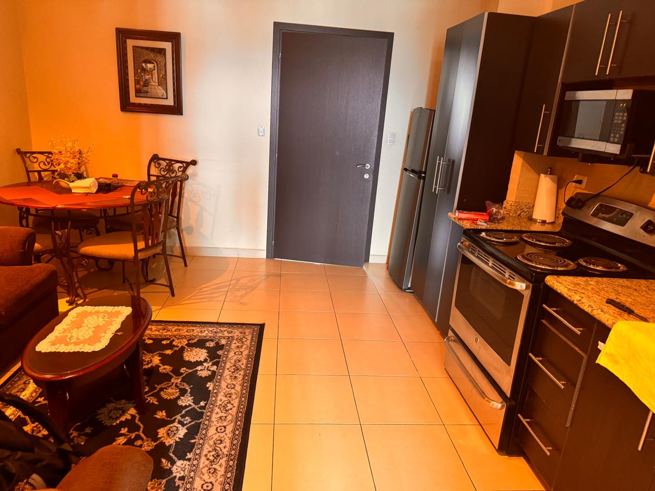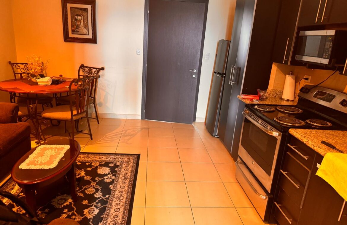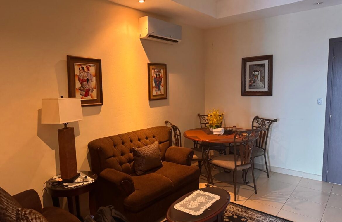 - Características: Sala con aire acondicionado, comedor, cocina, balcón con vista, 1 habitación con closet y aire acondicionado, 1 baño, 1 estacionamiento