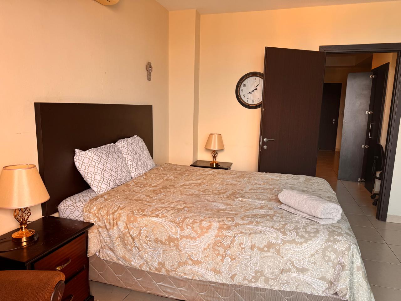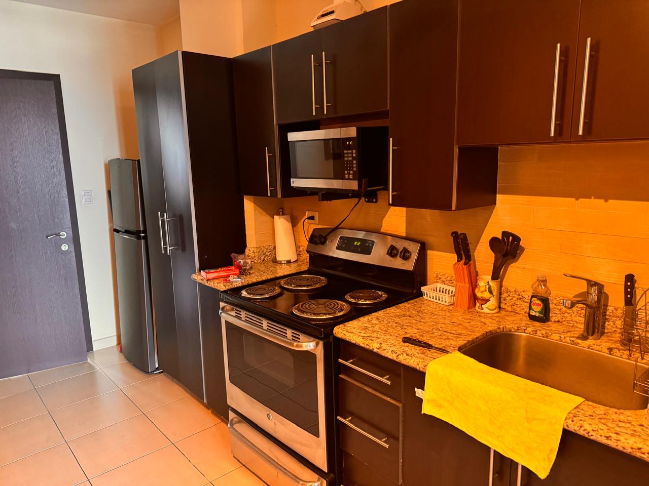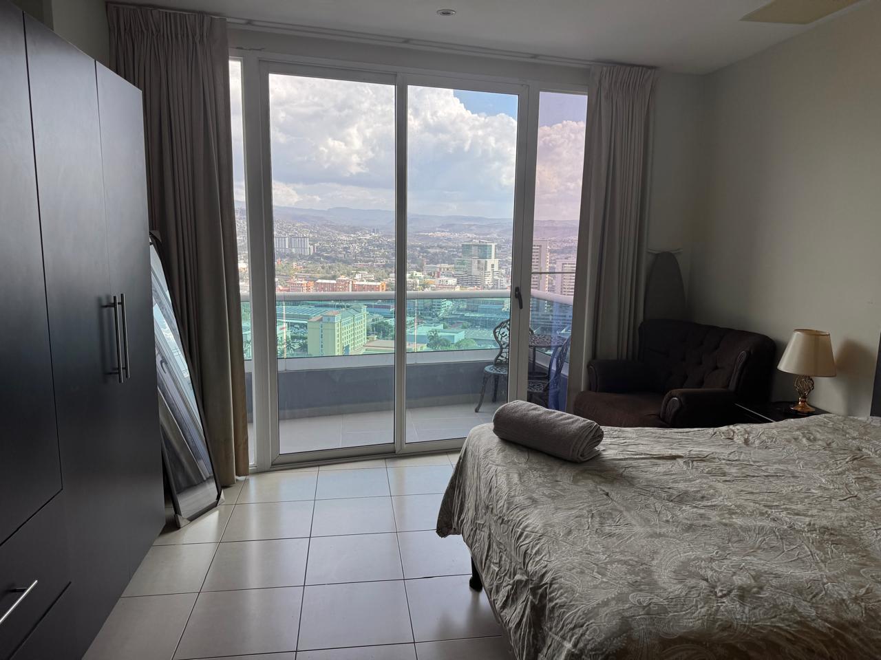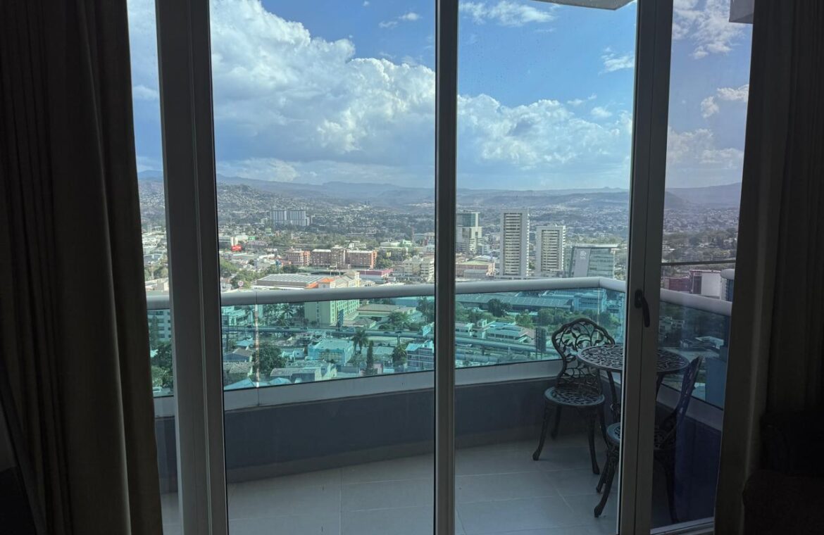 - Características: Sala con aire acondicionado, comedor, cocina, balcón con vista, 1 habitación con closet y aire acondicionado, 1 baño, 1 estacionamiento