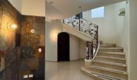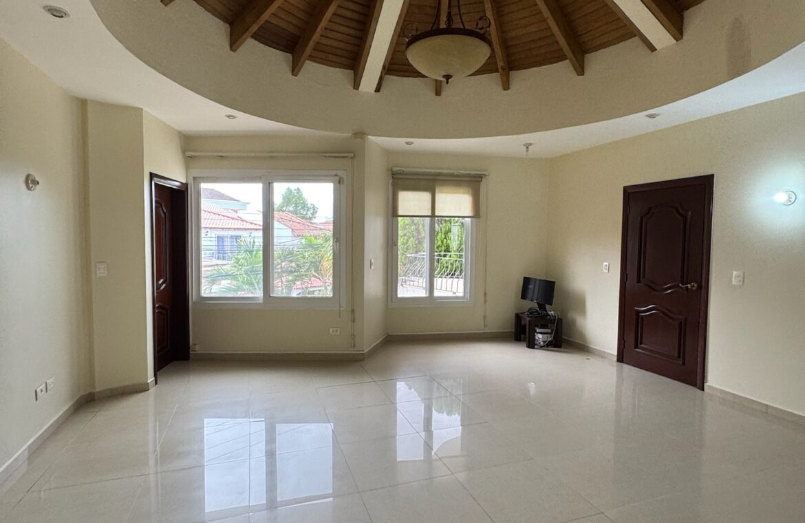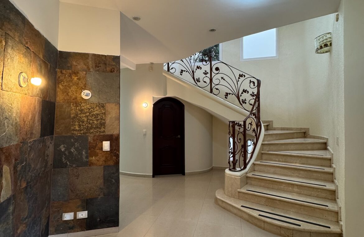 - Características: Recibidor, sala amplia con aire acondicionado, comedor, cocina grande con top de corean, aire acondicionado y despensa, sala familiar, 5 habitaciones con aire acondicionado, 5.5 baños con acabados de mármol, habitación principal con jacuzzi, tocador para el y ella, walk in closet con muebles de caoba, 4 estacionamientos.