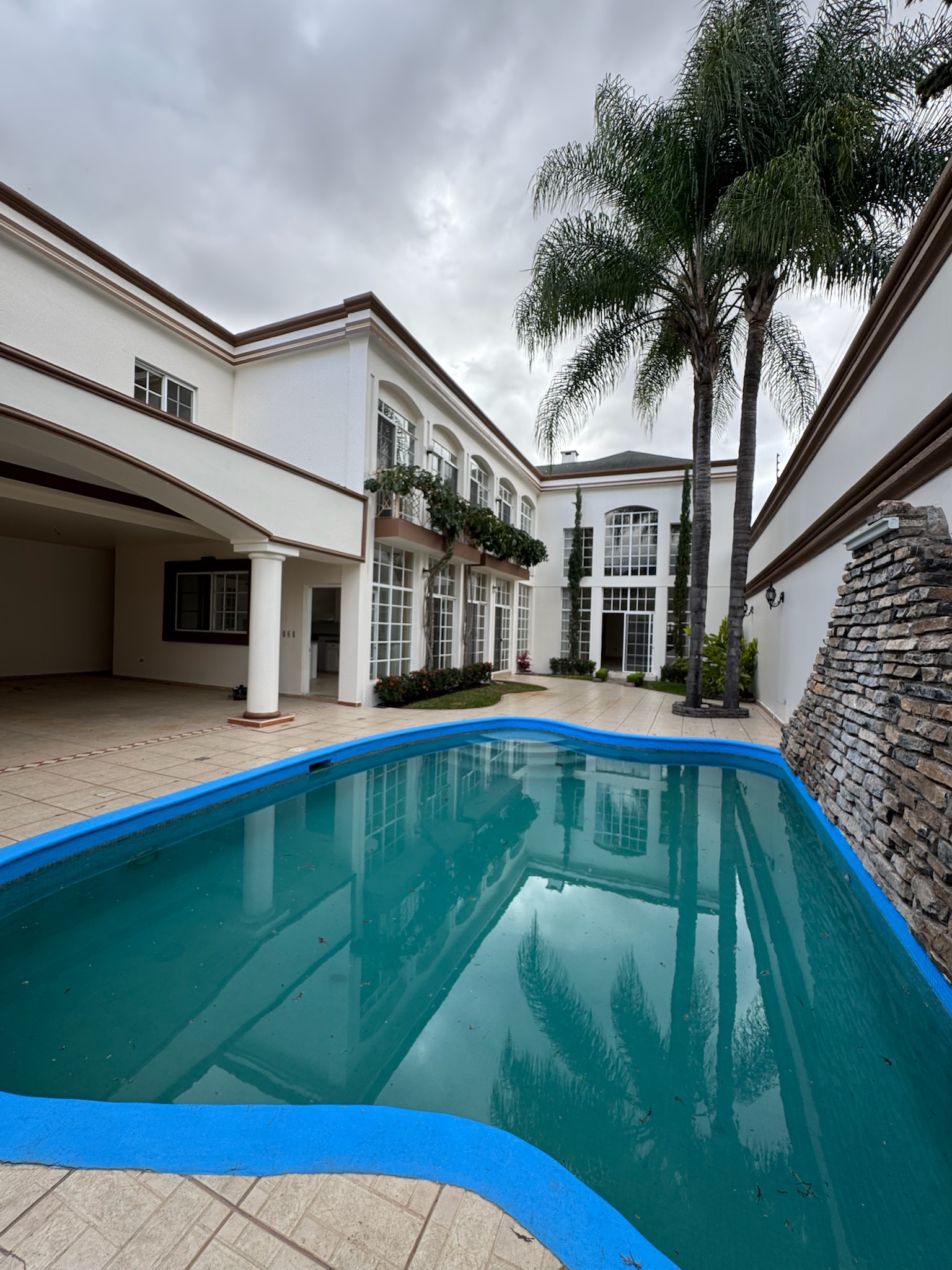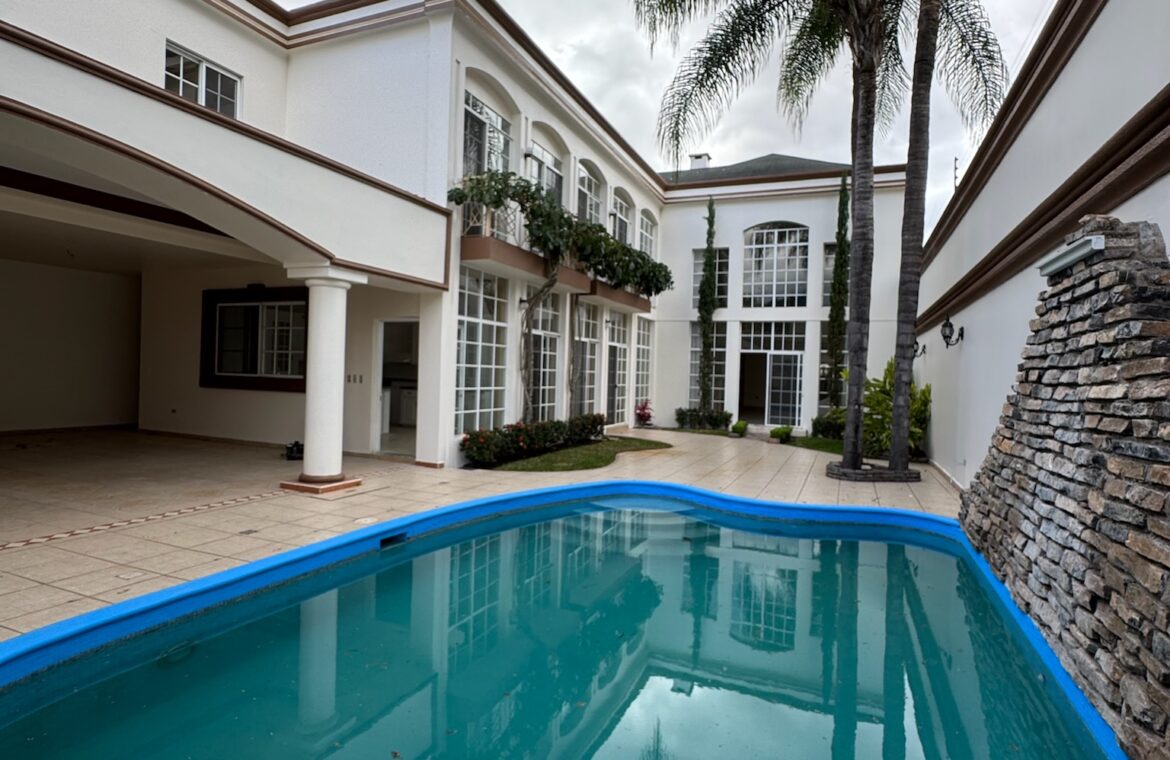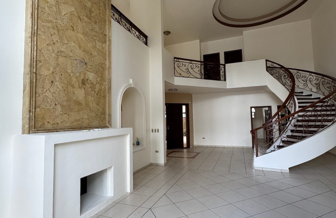 - Características: Recibidor, sala principal con chimenea, terraza social con piscina, área de barbacoa, comedir, cocina amplia con isla y top de granito, estudio, sala familiar, 5 habitaciones con closet, aire acondicionado, 5.5 baños, habitación principal con 2 vestidores y terraza, 6 estacionamientos con garaje eléctrico.