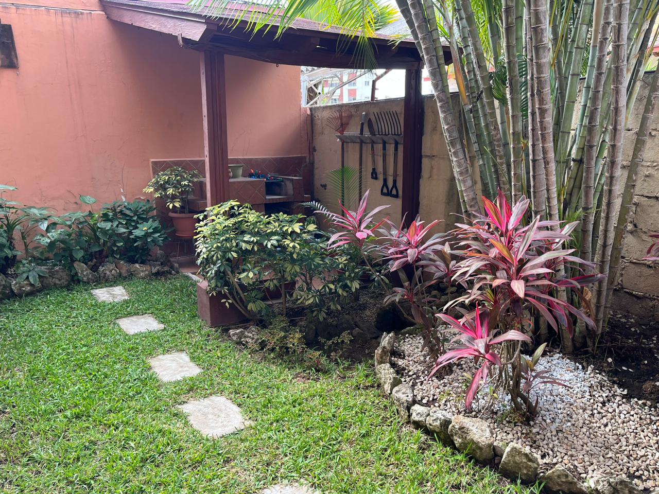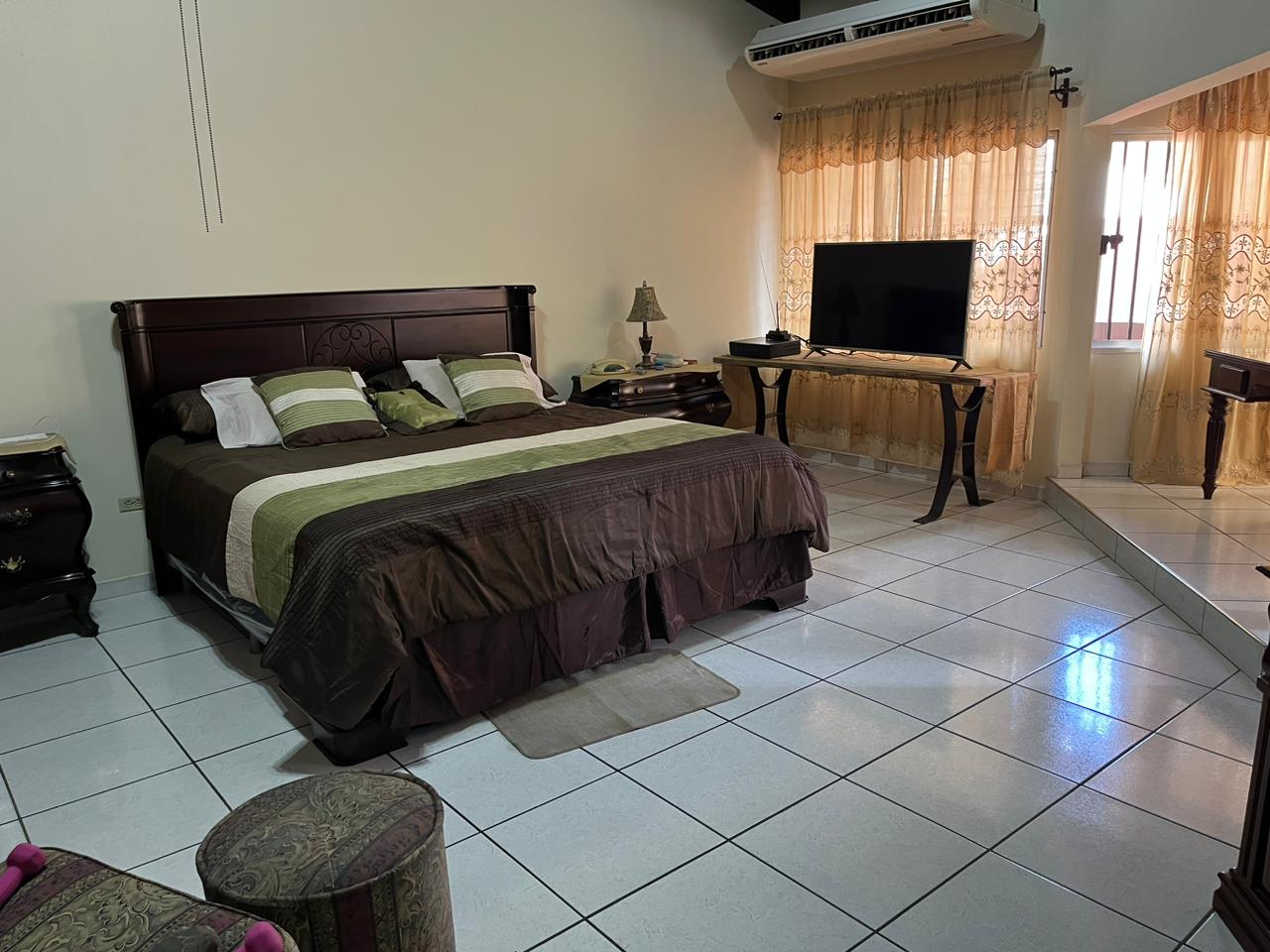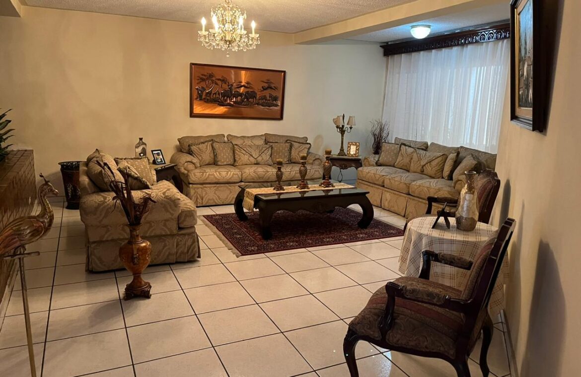 - Características: Recibidor, 2 salas principales, comedor, cocina amplia con top de granito, alacena, sala familiar, 4 habitaciones cada una con su closet, 4.5 baños, terraza, jardin, gimnasio, área social, 4 estacionamientos