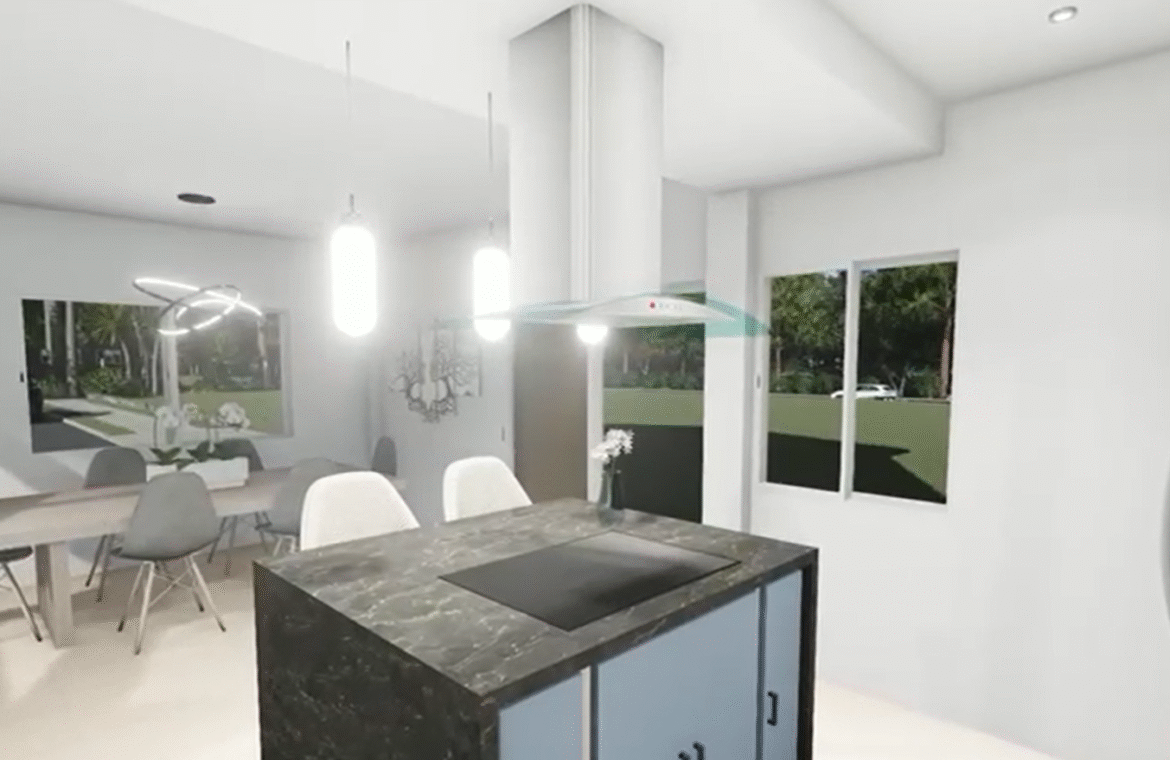 • Características: Sala, comedor, cocina con isla y top de granito, 3 habitaciones con closet, 2.5 baños, área verde ideal para jardín o pérgola, 1 estacionamiento.