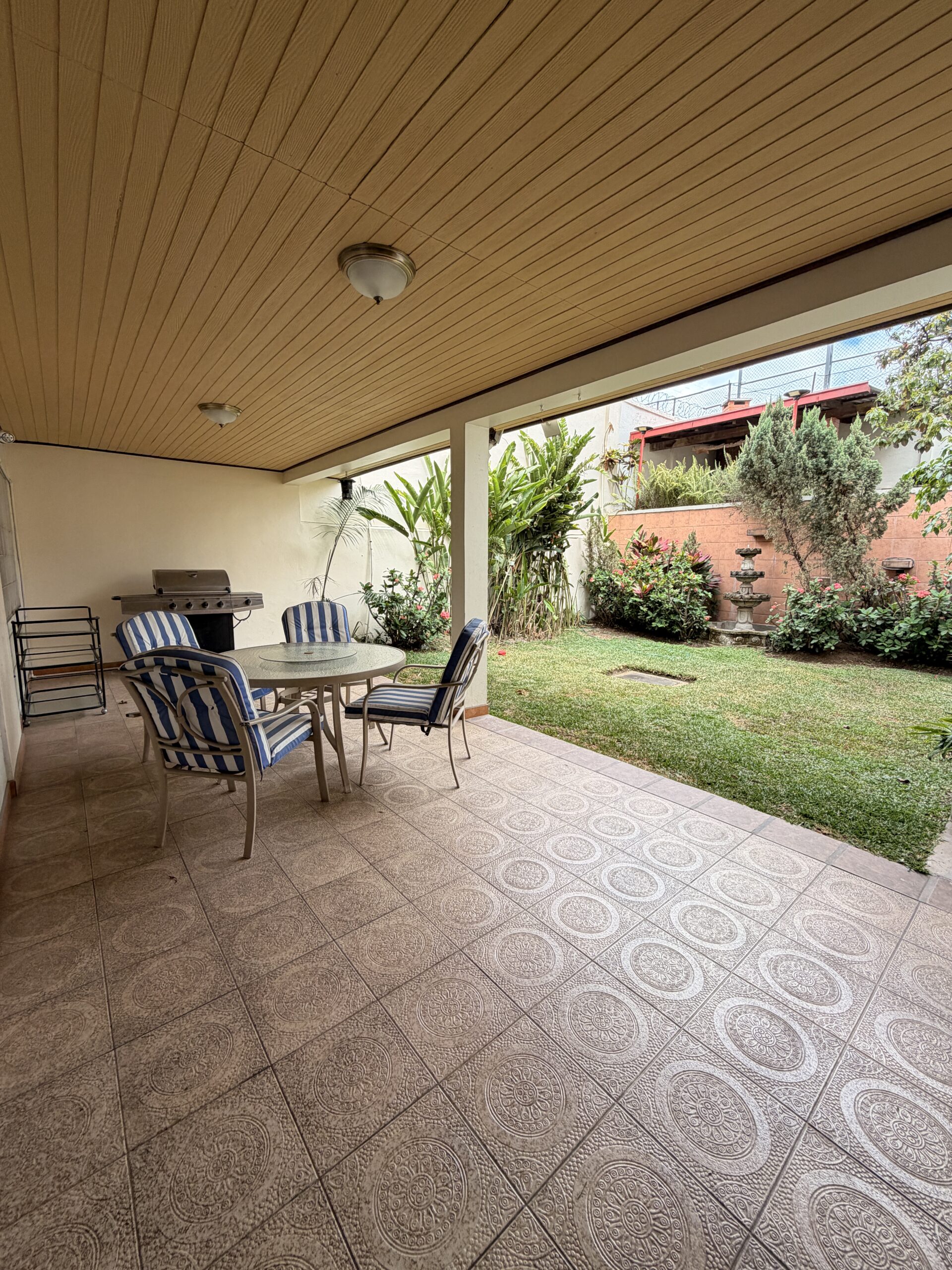 • Características: Recibidor, sala principal, comedor, cocina amplia con muebles de madera, alacena, 2 estudios, sala familiar, 4 habitaciones con closet, habitación principal con walk in closet, 2 terrazas sociales con jardín y área de barbacoa, 2 estacionamientos