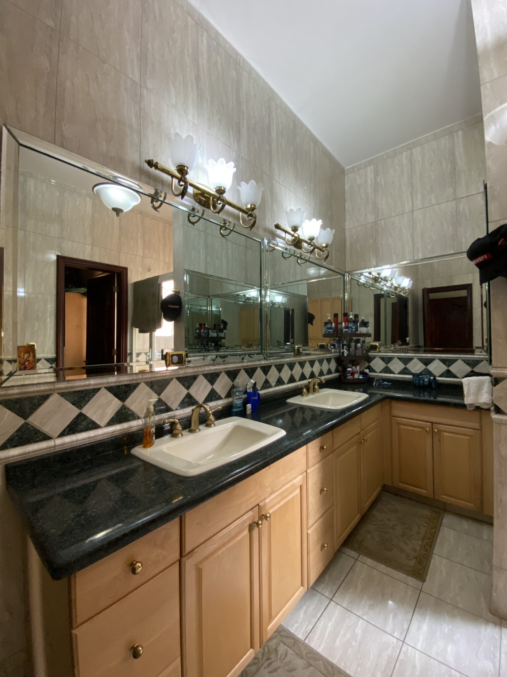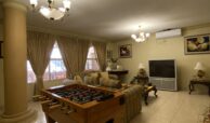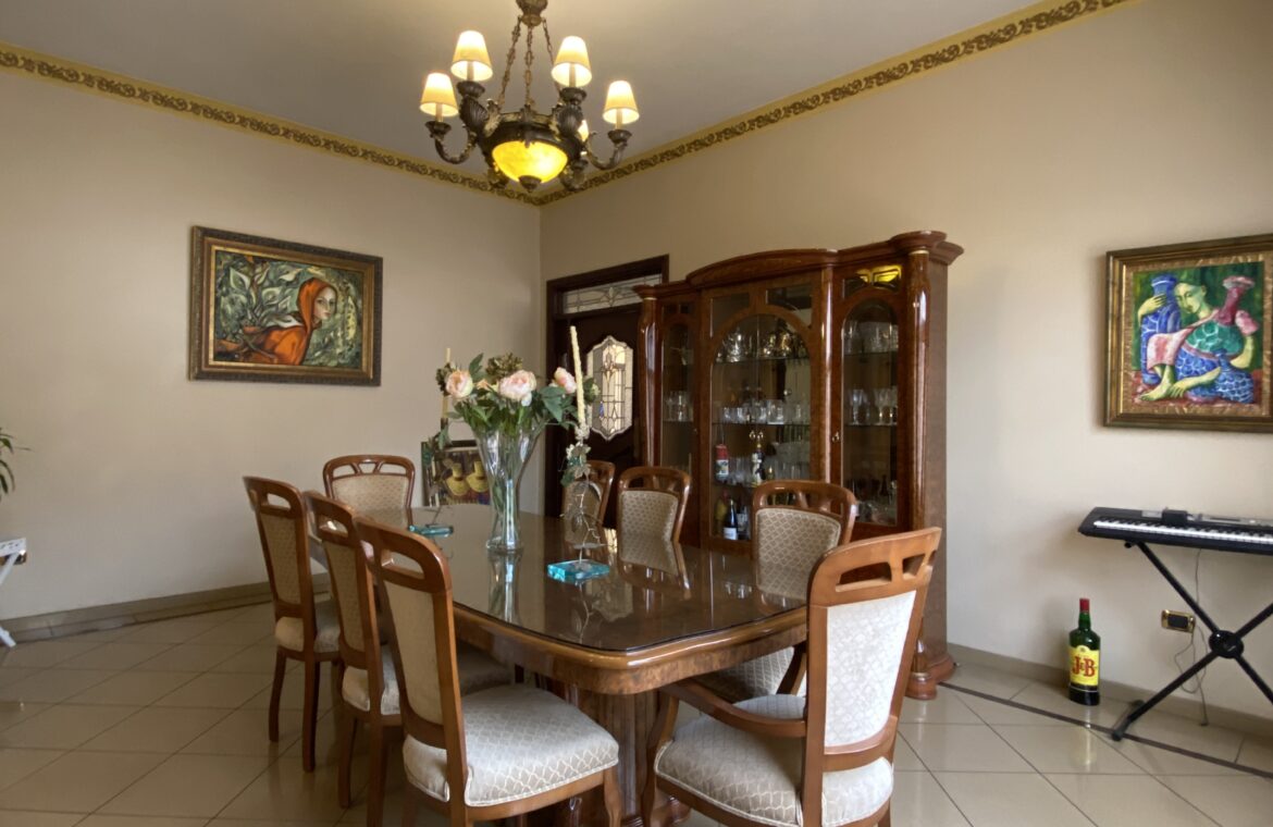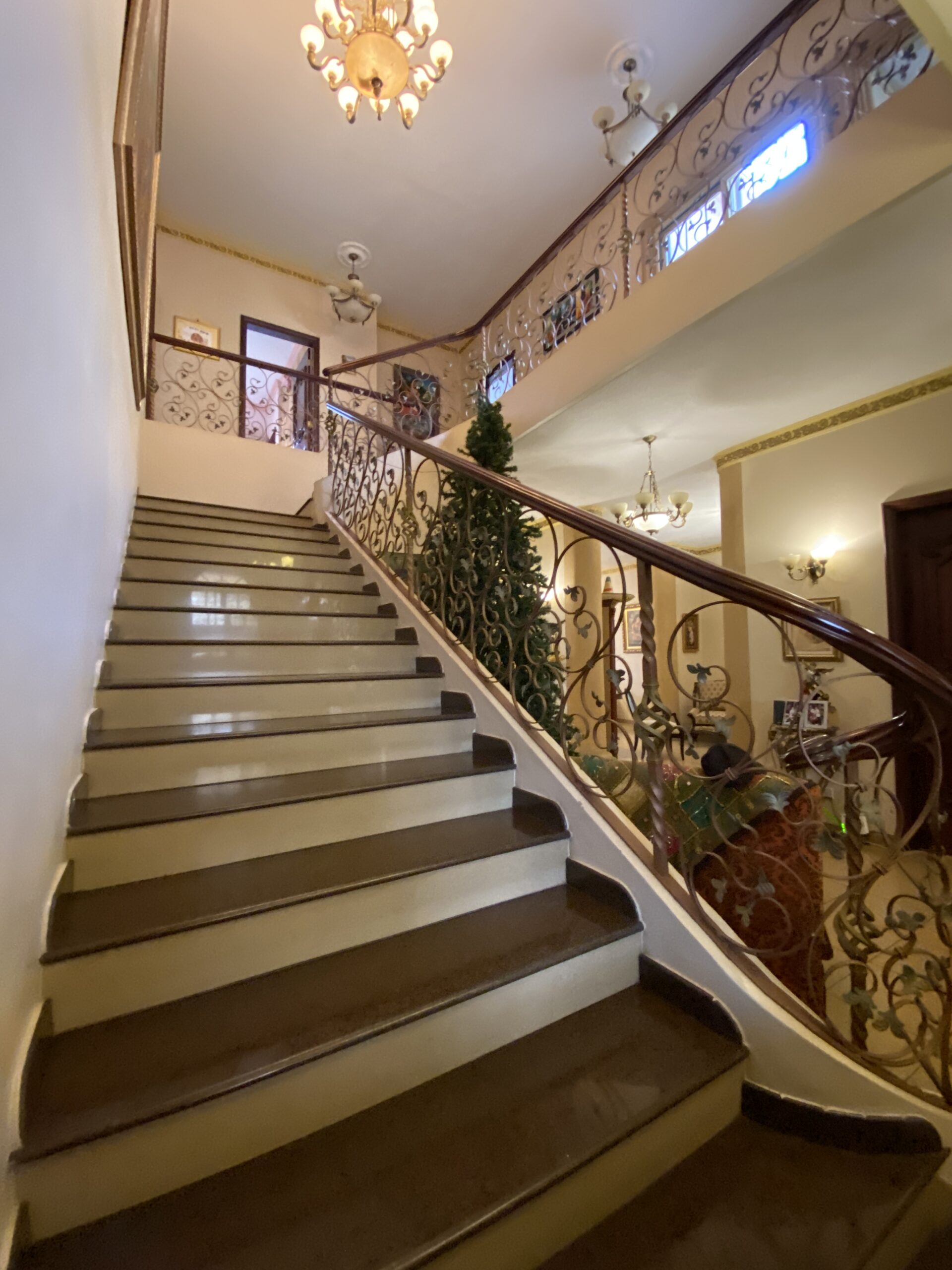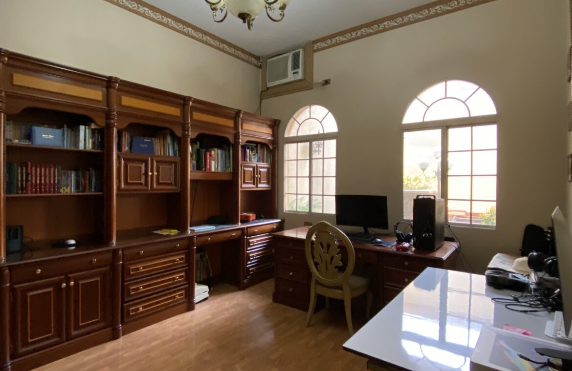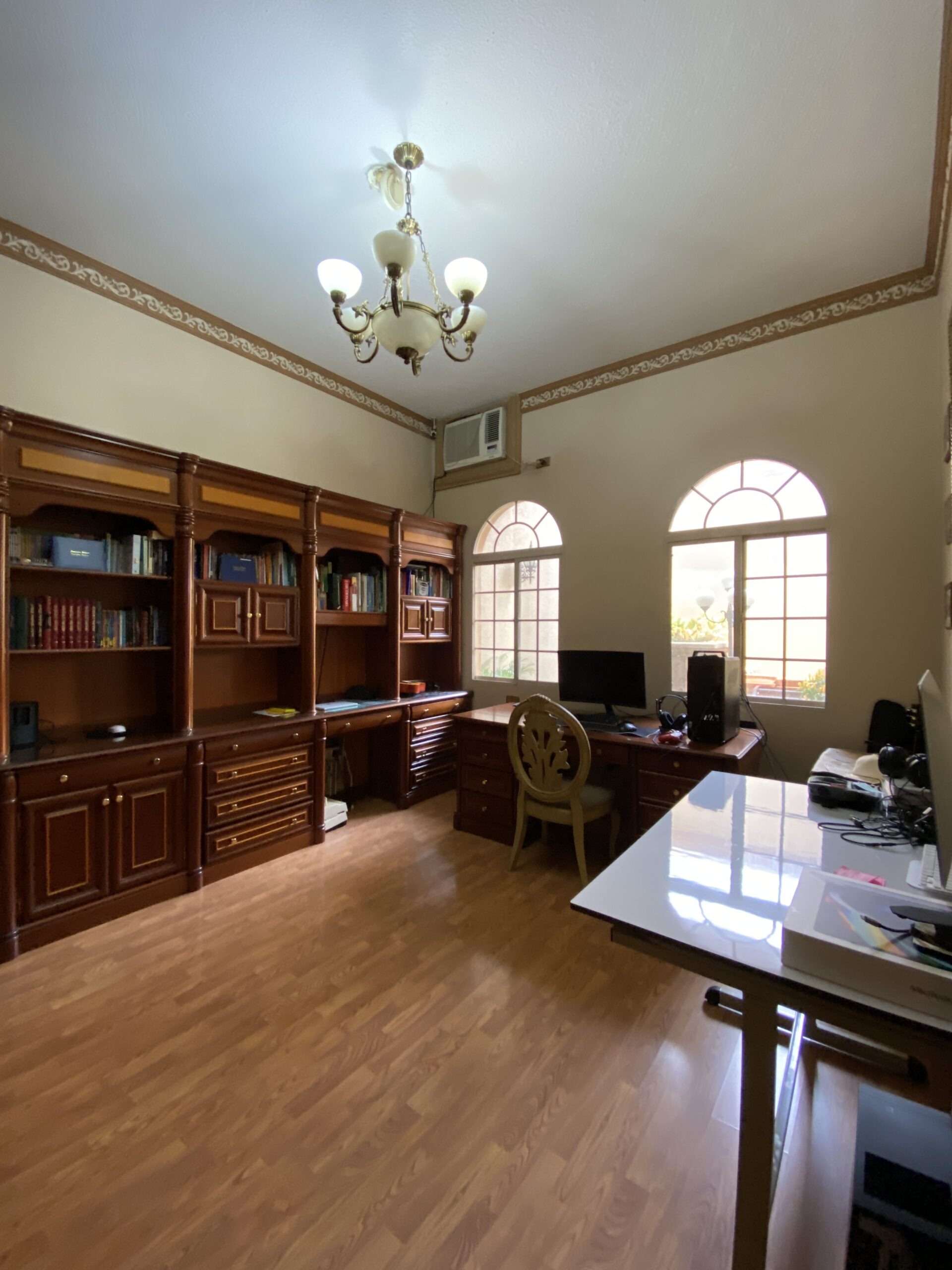 •Características: Puertas altas de caoba, recibidor, estudio con mueble, antesala con mueble, sala principal con lampara de alabastro, comedor, puertas de cocina con vitrales, cocina amplia top de granito, desayunador, alacena, baño de visita, sala familiar con terraza, habitaciones con sus vestidores y baños, habitación principal con jacuzzi, bodega, salón de juegos, estudio, terraza social con area de barbacoa, cuarto de huésped con baño completo y estacionamiento.