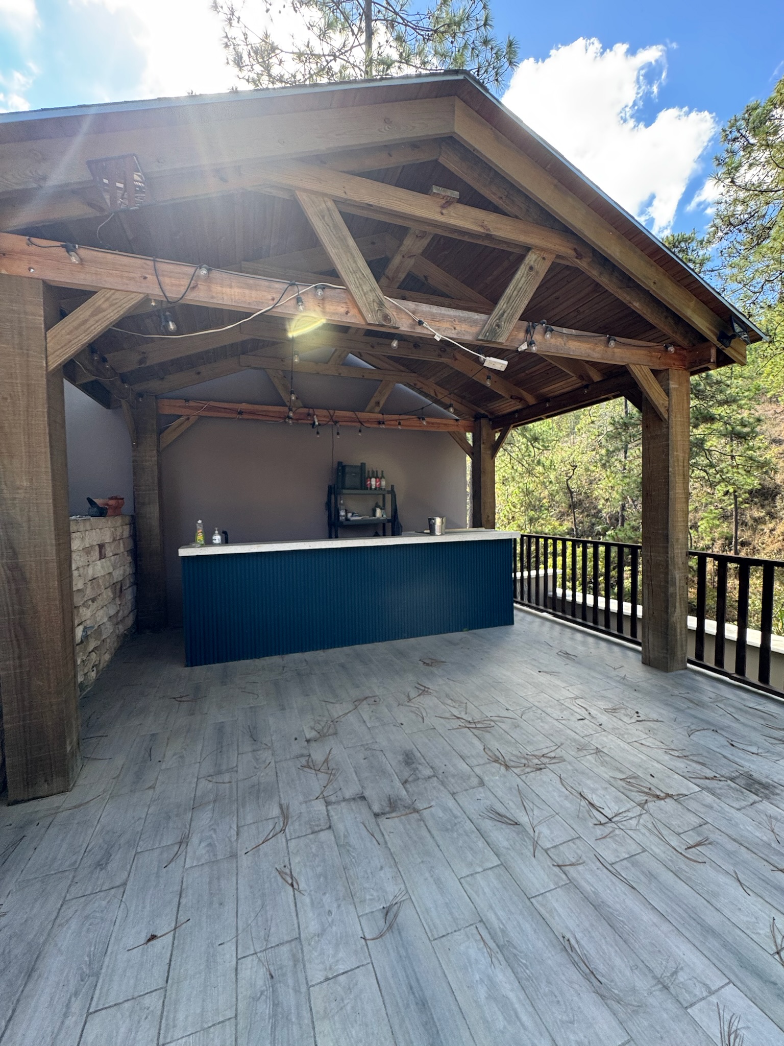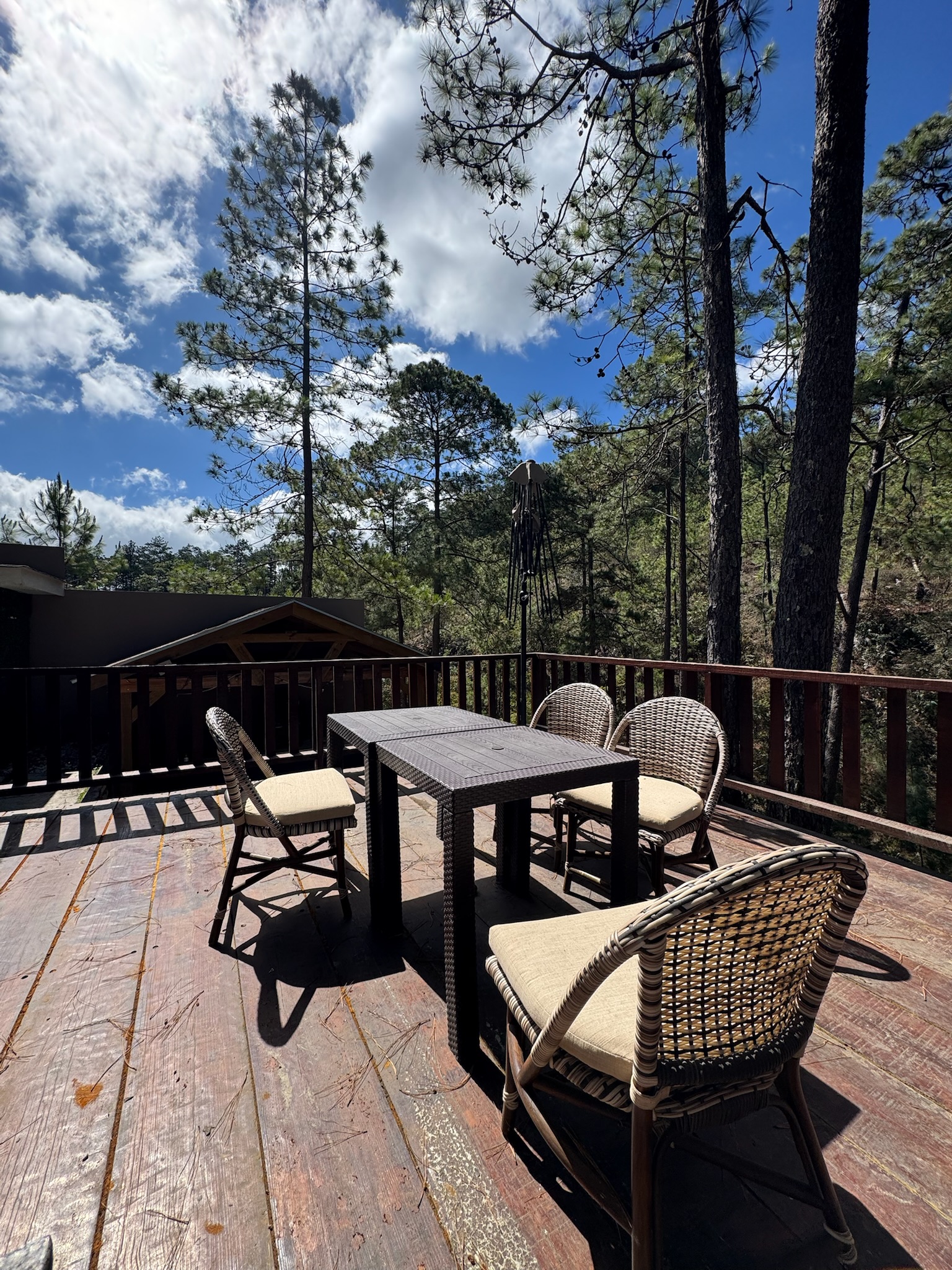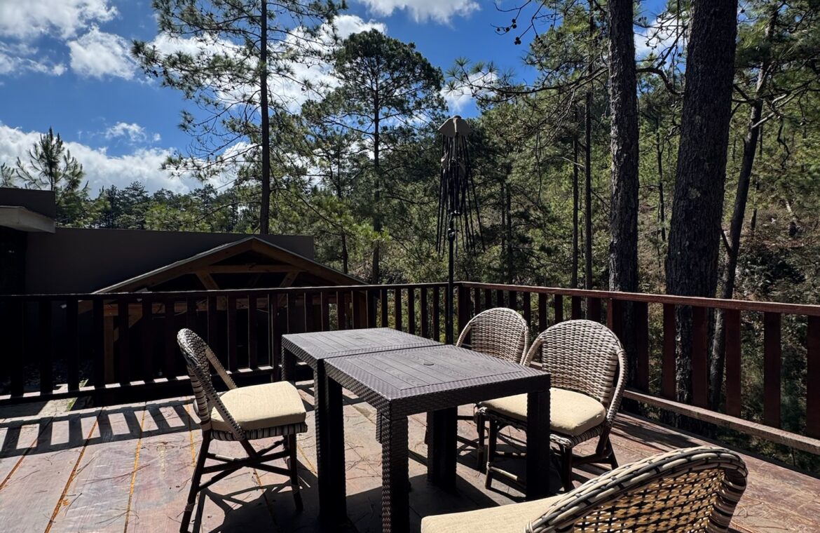 - Características: Sala principal con chimenea, comedor exterior, cocina con su desayunador y top de cuarzo, área social con terraza social con su deck de madera, área de barbacoa, estudio, 3 habitaciones 3.5 baños, 1 habitación en planta baja con baño y patio, habitación principal con ducha y bañera independiente con balcón privado, 3 estacionamiento