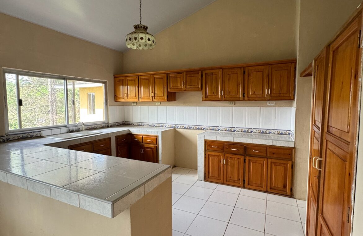 - Características: Recibidor, sala principal con chimenea, comedor, cocina amplia con gabinetes de madera, sala familiar, habitaciones con closet y baño, amplio jardín, kiosko social, amplio estacionamiento