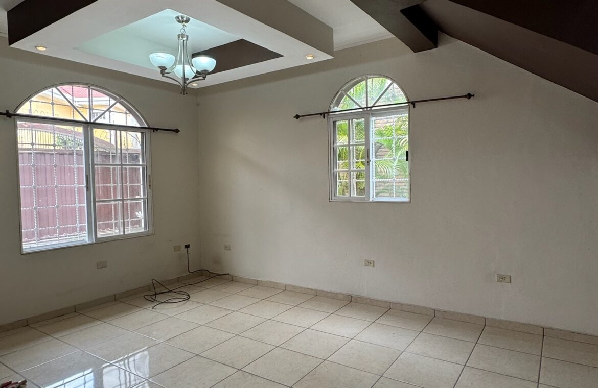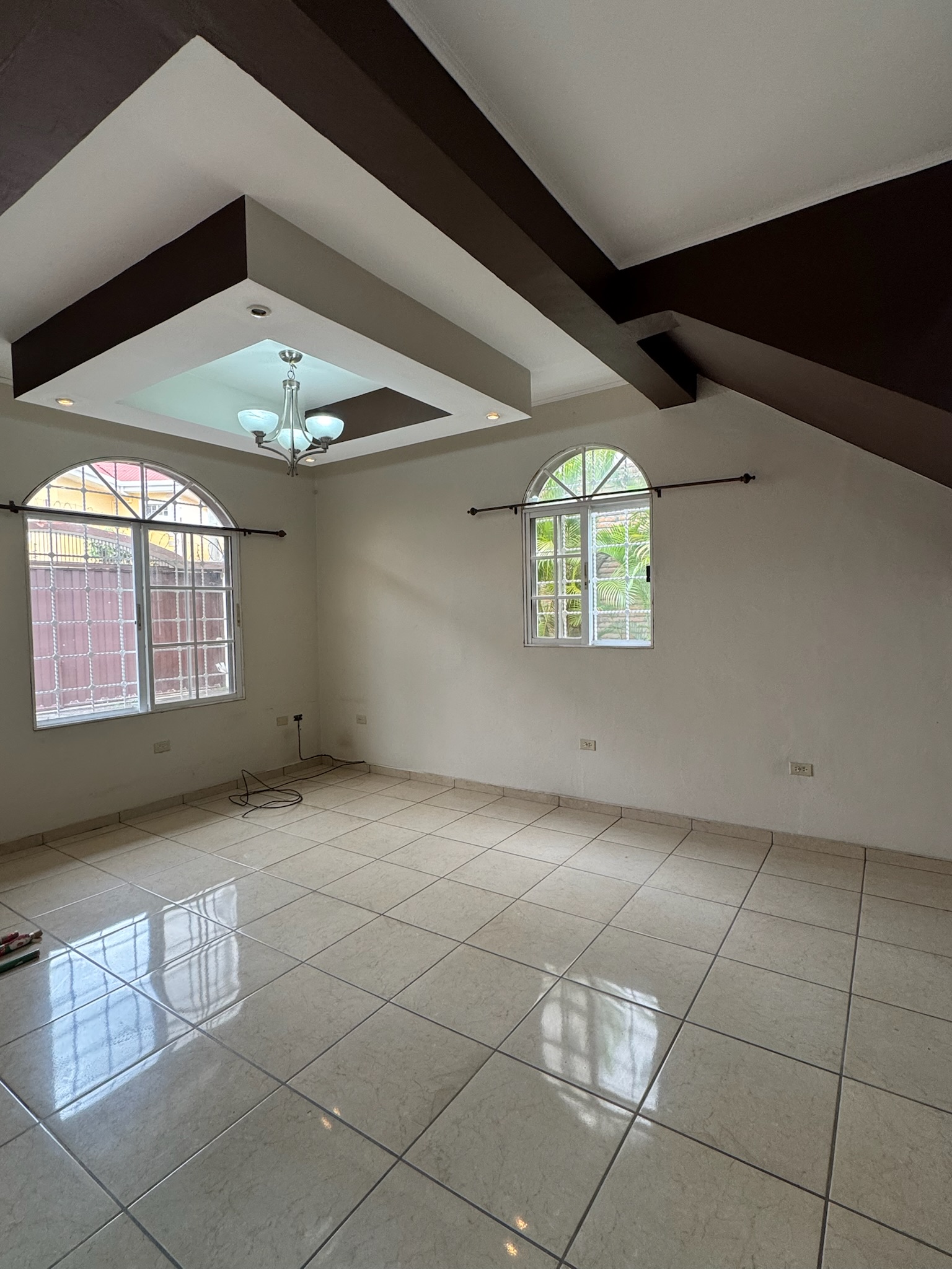 - Características: Recibidor, sala principal, comedor, cocina amplia, estudio, sala familiar con balcón, 3 habitaciones, 2.5 baños, habitación principal con baño y bañera, amplio jardín, 2 estacionamientos