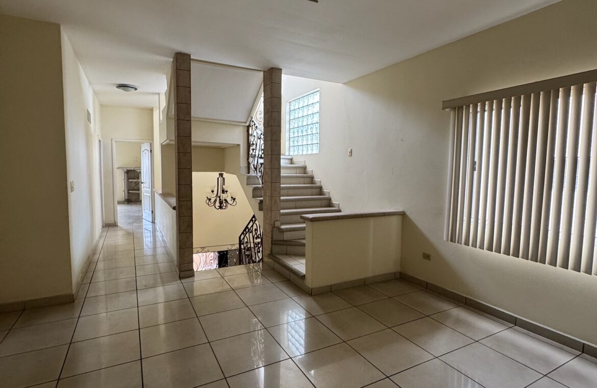 - Características: Sala formal, comedor, cocina con gabinetes, alacena, antesala, sala familiar, 4 habitaciones, 4.5 baños, salón multiusos, cocineta, jardín, 2 estacionamientos