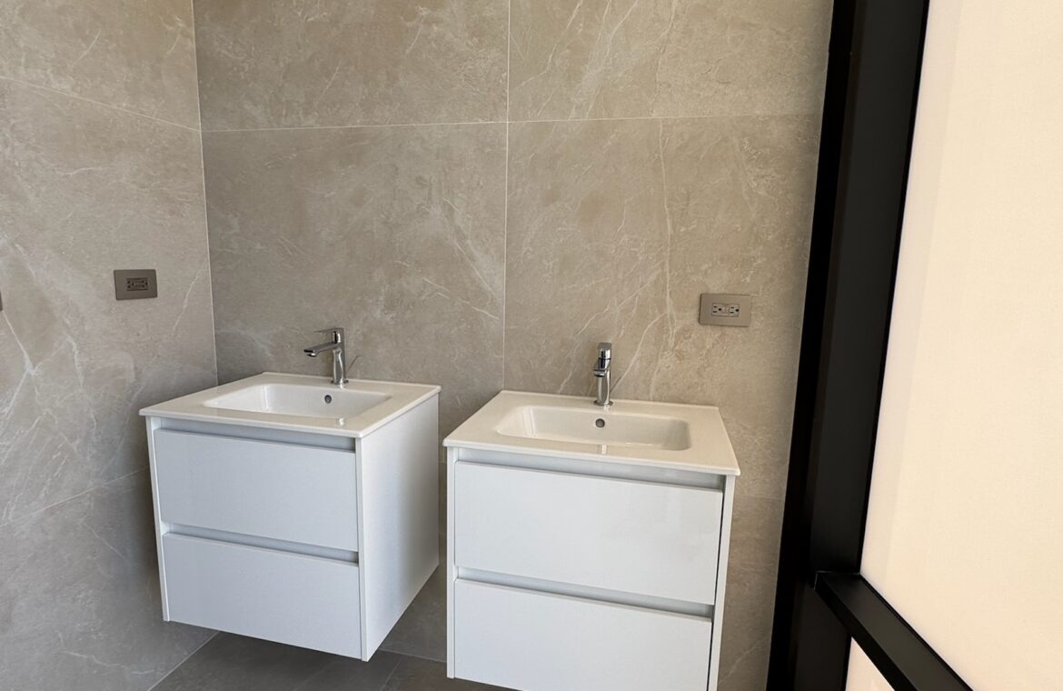 - Amenidades: Lobby, salón de eventos, área de barbacoa, piscina, sun deck, cuarto de masajes, sauna, vapor, salón de juegos para niños, cancha de pickeball, gimnasio, sala de cine, green lounge, área de co-work, sala de conferencias, ducha, área de mascotas, sala para choferes y personal de seguridad