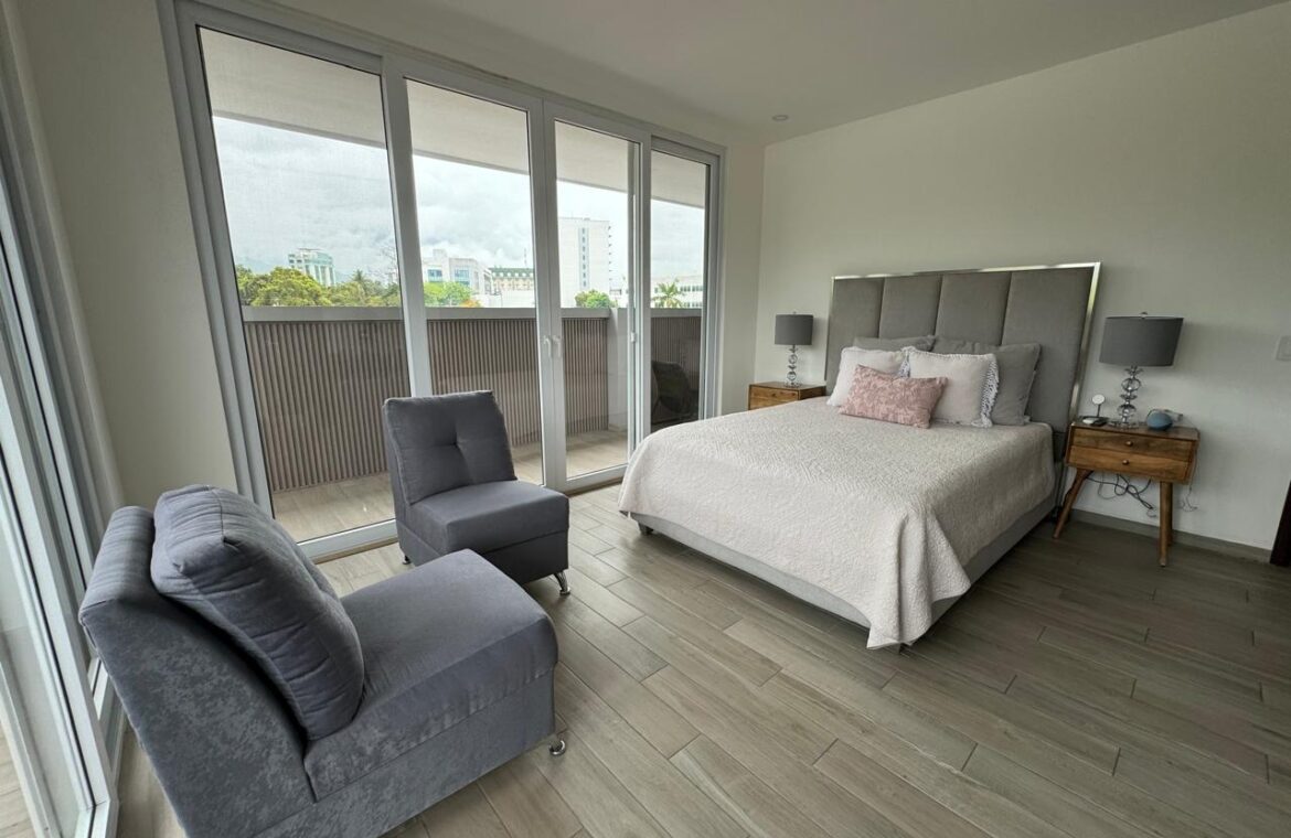 - Características: Sala, comedor, cocina, terraza con vista a la ciudad, seguridad 24/7.