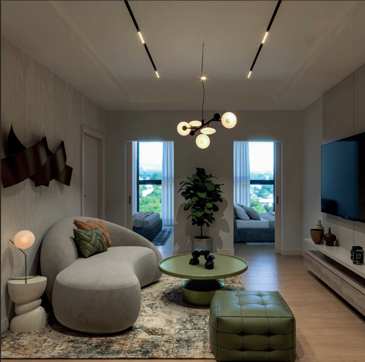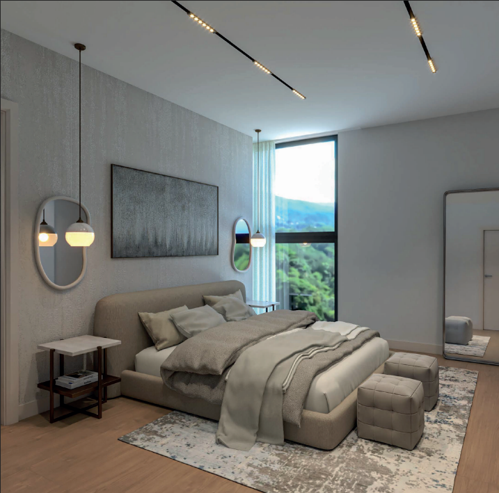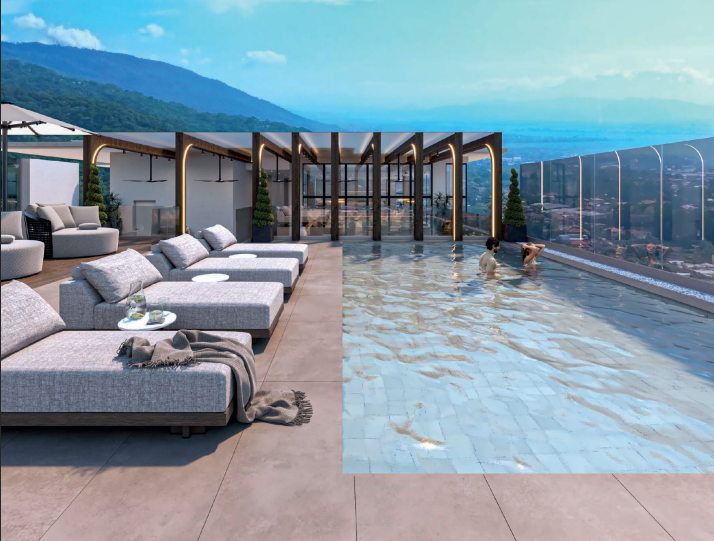 - Amenidades: Lobby, sala de juntas, elevadores, pet park, grooming, playground, gimnasio, piscina, rooftop, salón de eventos, área de barbacoa, game y movie lounge, business center, yoga, sauna y spa.